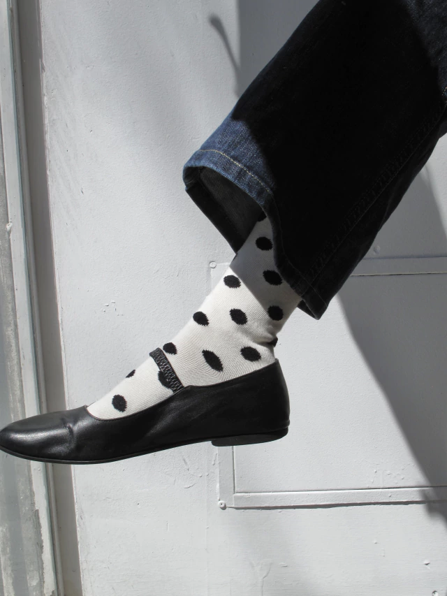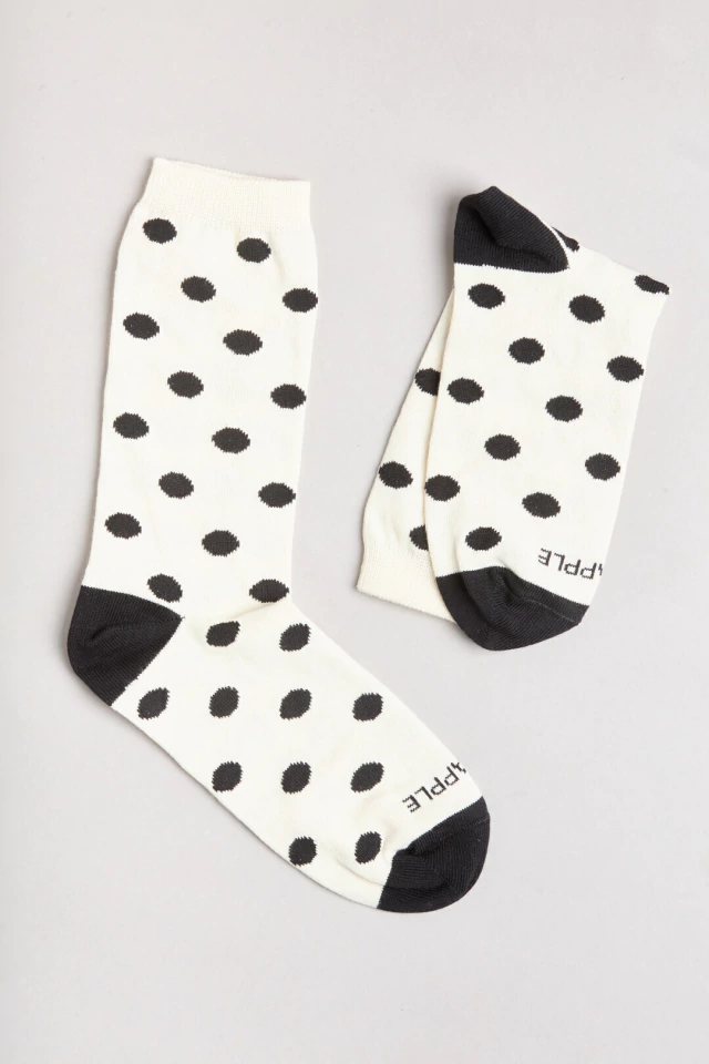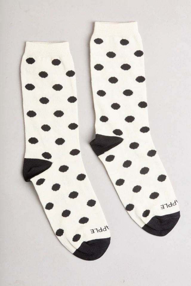 Base lisa color beige con lunares negros, detalle en los dedos Pineapple a contratono.